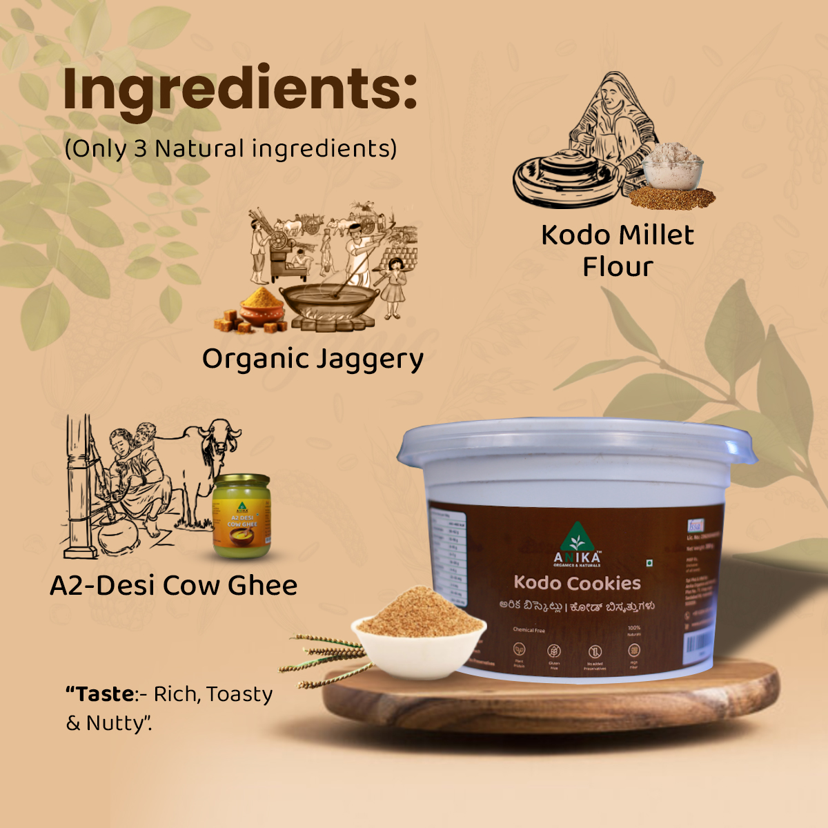 Ingredients: Kodo millet flour, Organic Jaggery, Desi Cow Ghee